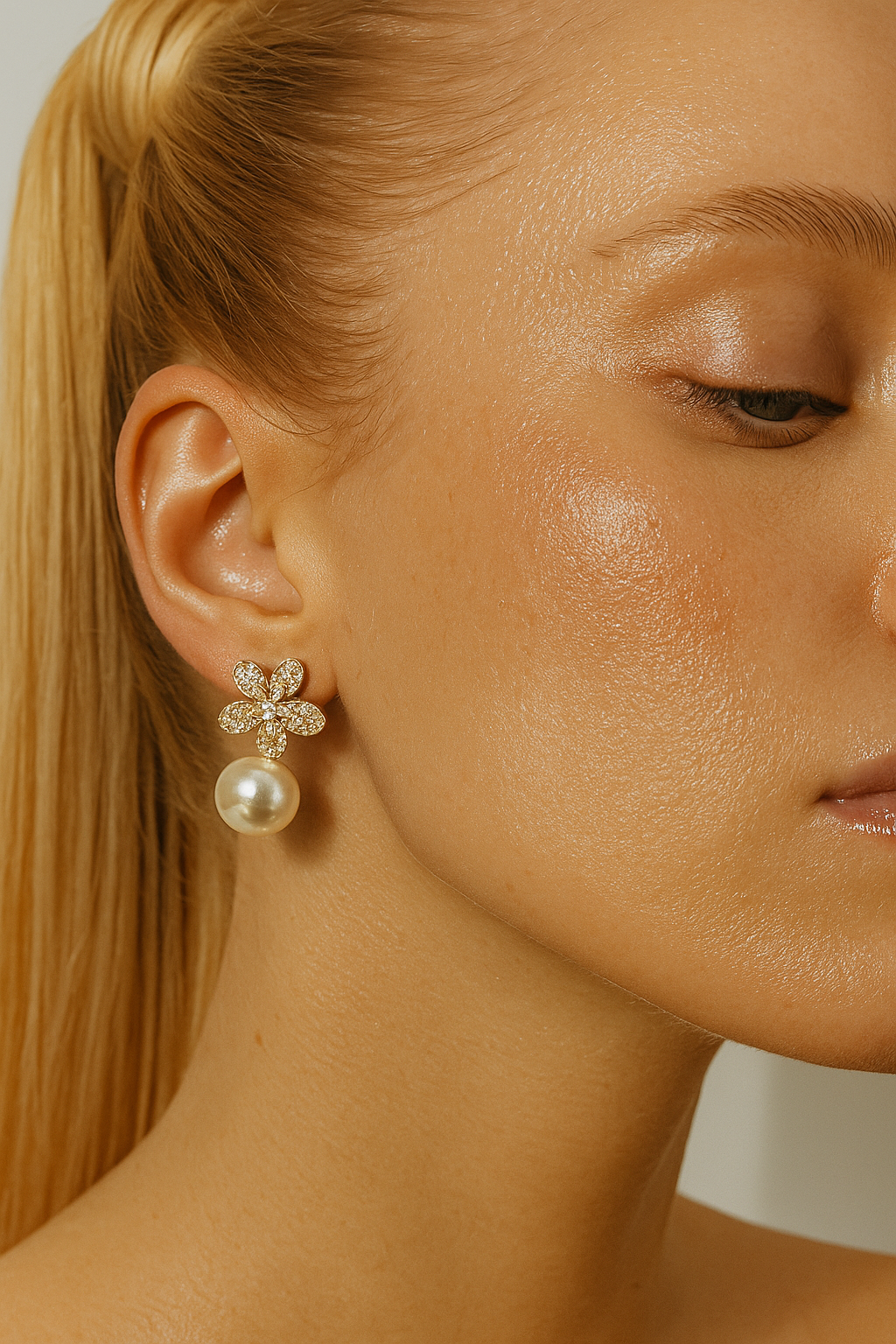 O Brinco Belle Perle celebra a união entre a delicadeza da flor e a nobreza da pérola. Um design atemporal que transmite graça e luminosidade, ideal para mulheres que desejam destacar sua elegância natural.