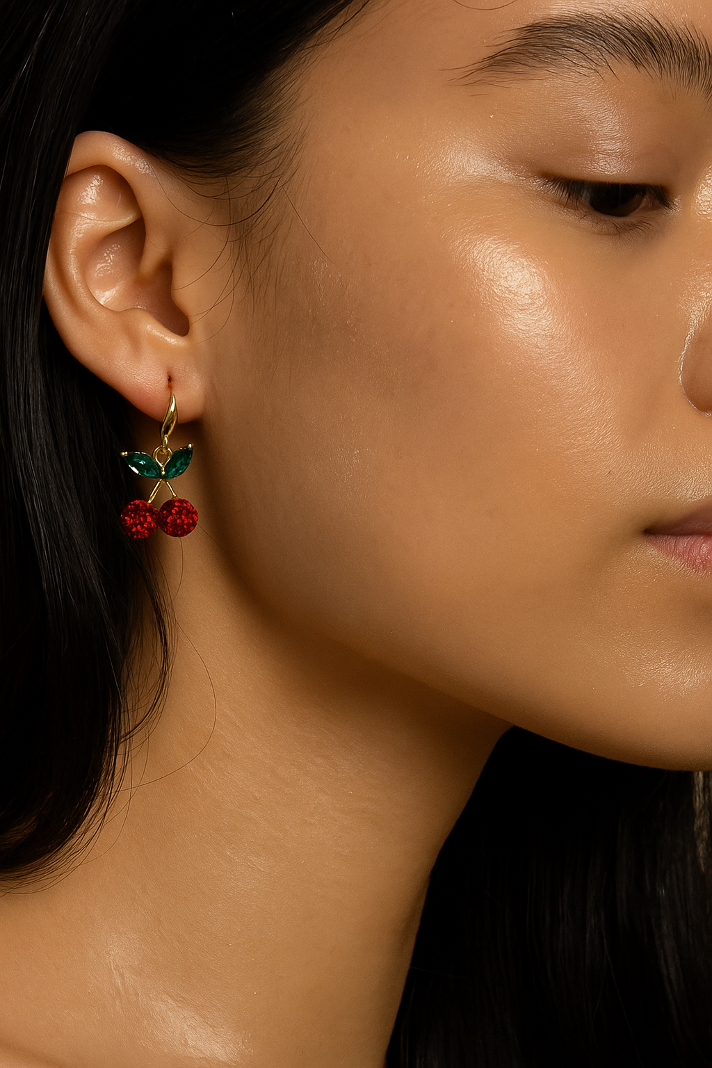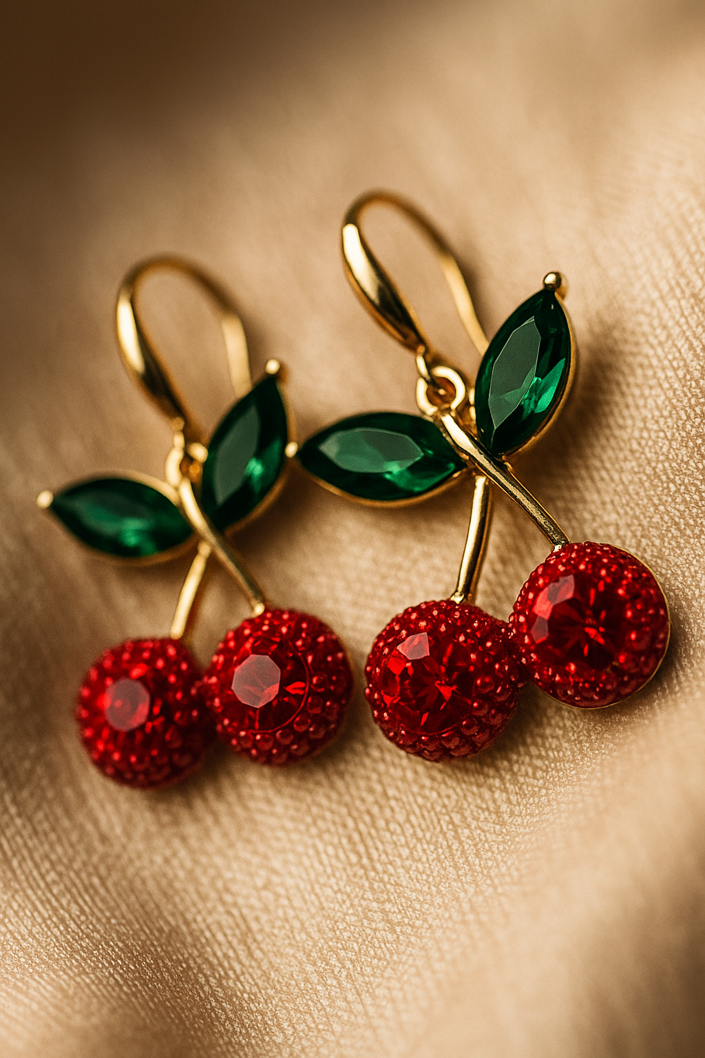 Divertido e sofisticado ao mesmo tempo, o Brinco Cherry Glow combina o vermelho vibrante das cerejas ao verde profundo das folhas, criando uma peça cheia de personalidade. Perfeito para quem gosta de acessórios delicados que roubam a cena com charme e frescor.