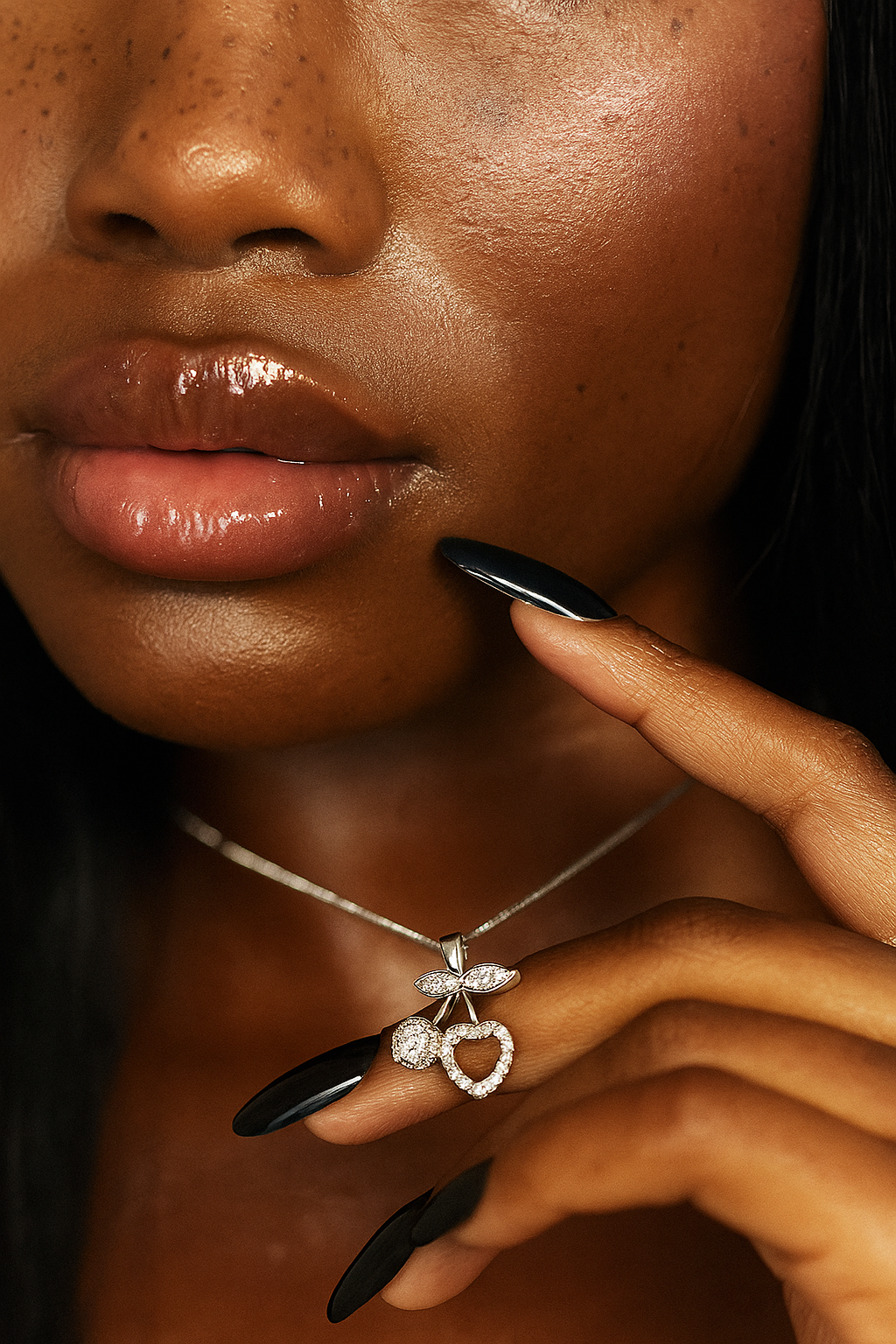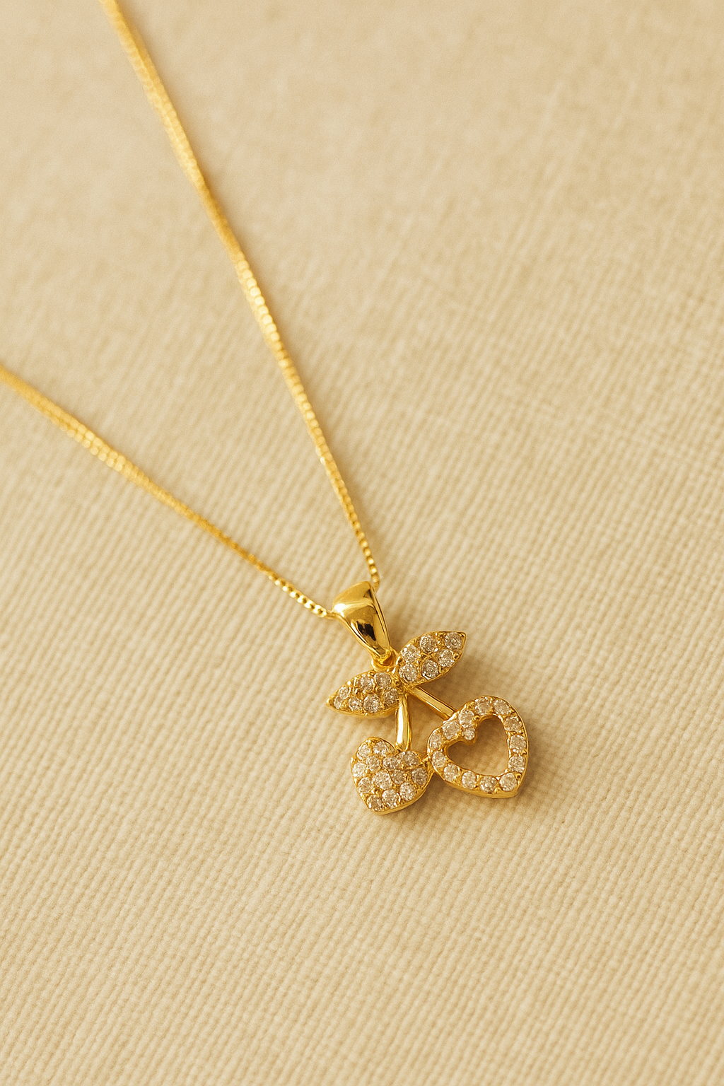 O Colar Douce Cerise traduz a doçura e a feminilidade em um design encantador. Suas cerejas adornadas por delicados cristais brilham com charme sutil, trazendo um toque lúdico e sofisticado ao visual.